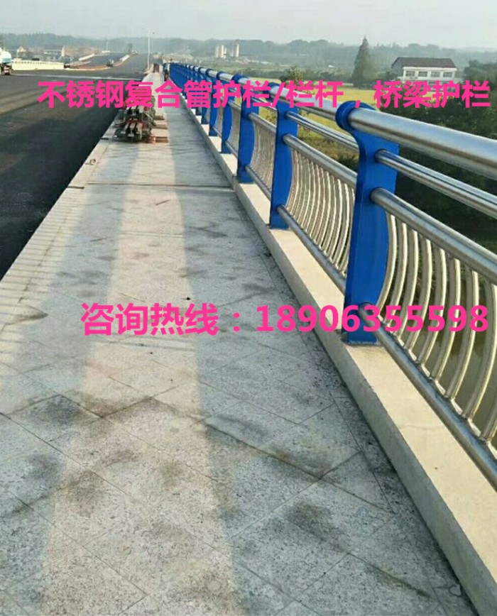不銹鋼復(fù)合管欄桿,它不僅具有不銹鋼管的豪華美觀和現(xiàn)代氣息,又具有普通碳鋼管的堅韌性。是價昂不銹鋼管的替代品,它與鍍鋅噴塑鋼板立柱配合,做成城市、道橋等的安全欄桿。不僅牢固、大方,且可造型各異,是城市景觀護(hù)欄的首選。